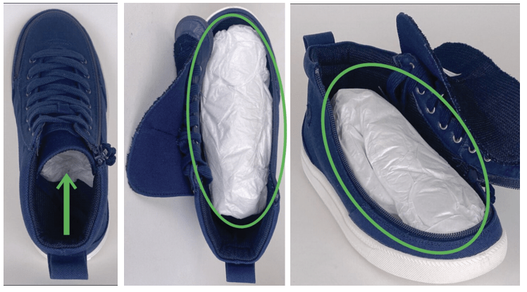 • Paper is pushed into the toe of the shoe to help keep the proper shape.