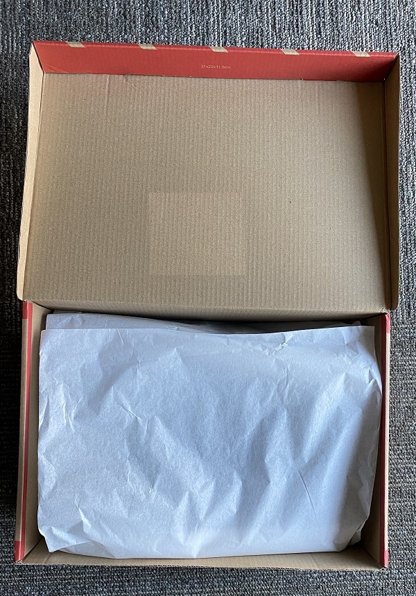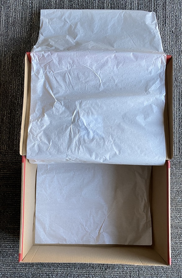 • Plain white tissue (paper weight 15-17g/m2) inside shoebox.