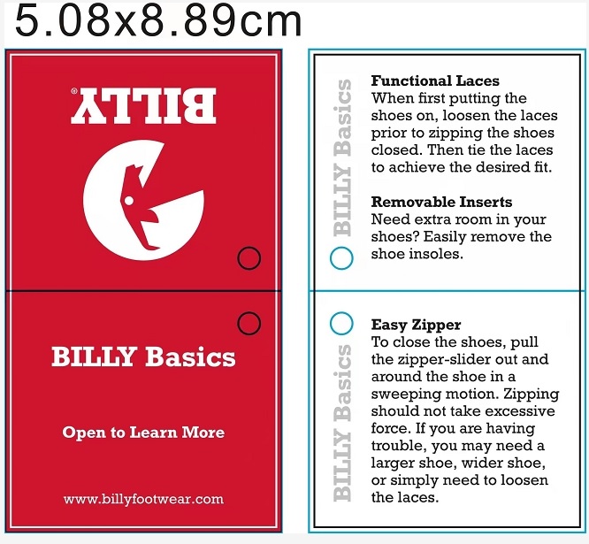 • If style uses the BILLY Basics Hangtag, do not put the Shoebox Insert Card in the box.