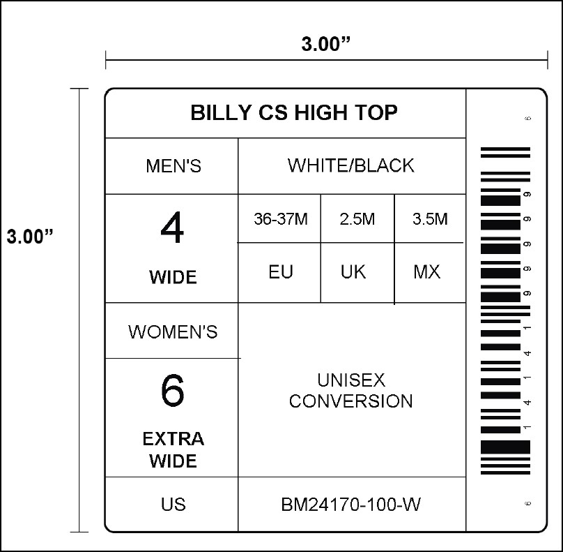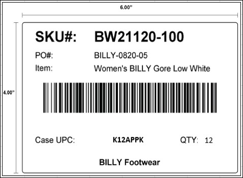 Example of Shoebox label for Men’s, Women’s, and Kid’s: