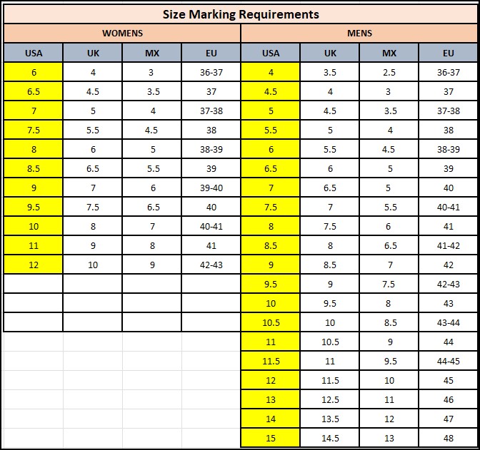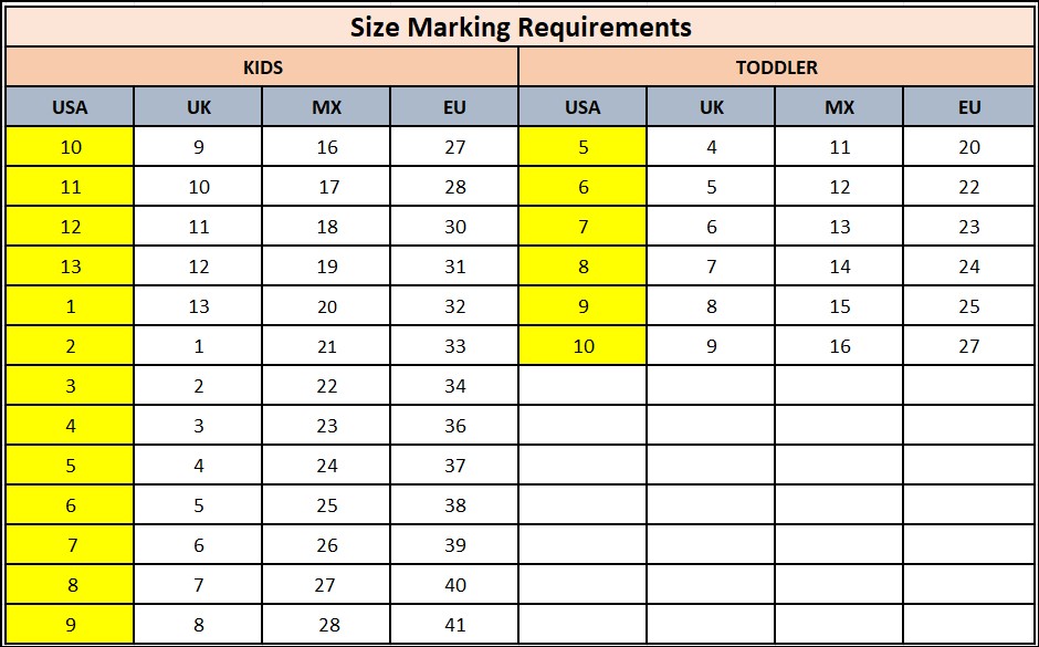 -SHOE MARKING REQUIREMENTS FOR KIDS & TODDLER-